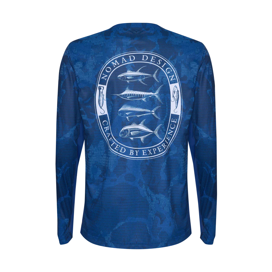 The NOMAD DESIGN LONG SLEEVE TECH FISHING SHIRTS feature UPF 50+ for the ultimate in sun protection. Made from REPREVE R recycled performance fibre that is sustainably manufactured from recycled plastic bottles (main body of fishing shirt). The lightweight technical fabric is water repellent to dodge the occasional splash while also being moisture wicking and quick dry to keep you cool all day and pull sweat away from the skin. Breathable side panels offer additional ventilation on the hottest days. The designs are fully sublimated for a super soft feel shirt and feature Nomad Design’s custom camo print.