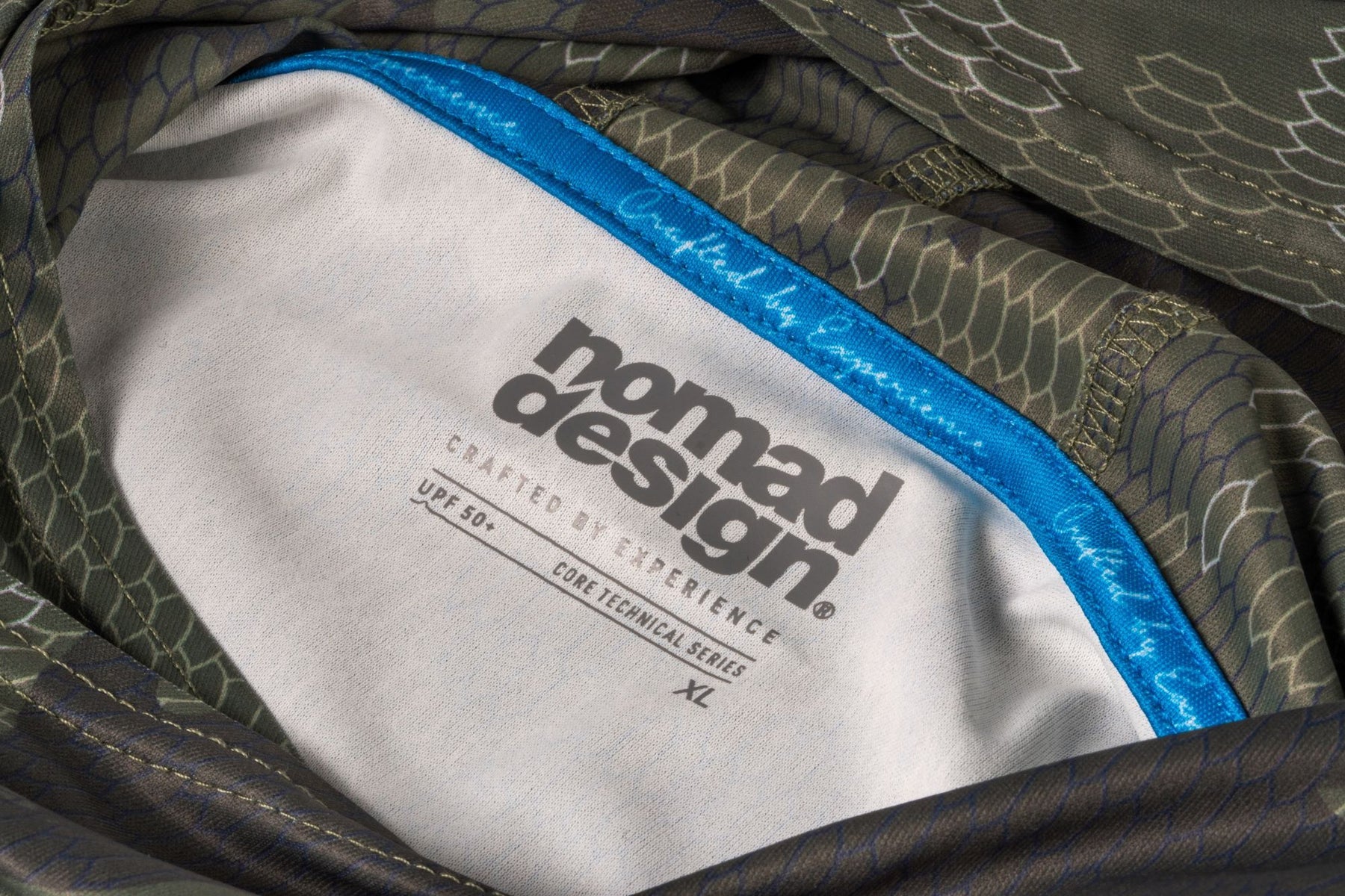 The NOMAD DESIGN HOODED LONG SLEEVE TECH FISHING SHIRTS feature UPF 50+ as well as a lightweight hood for the ultimate in sun protection. Made from REPREVE R recycled performance fibre that is sustainably manufactured from recycled plastic bottles (main body of fishing shirt). The lightweight technical fabric is water repellent to dodge the occasional splash while also being moisture wicking and quick dry to keep you cool all day and pull sweat away from the skin. Breathable side panels offer additional ventilation on the hottest days. The designs are fully sublimated for a super soft feel shirt and feature Nomad Design’s custom camo print.